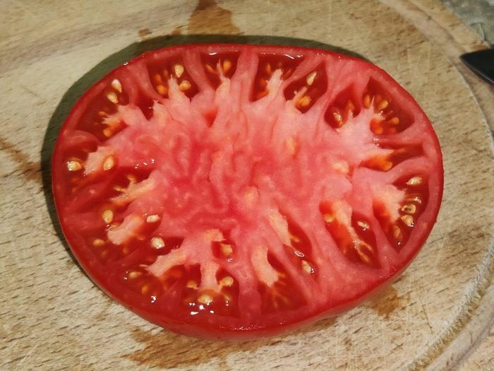TOMATELE AU GUST EXCELENT, DULCE, FOARTE BINE ECHILIBRAT CU ACID, CU AROMĂ INTENSĂ,DE ROȘIE VECHE, SUNT FOARTE SUCULENTE, CU PULPĂ FERMĂ, FOARTE CĂRNOASĂ, CU SEMINȚE PUȚINE, CE SE POT FELIA PERFECT.