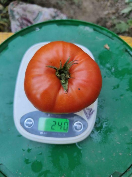 FRUCTELE SUNT MARI , AU MEDIA DE 200-300 grame, MULTE AJUNG LA 500-600 grame, ȘI CHIAR PESTE 1 kilogram, DE CULOARE ROȘIE .