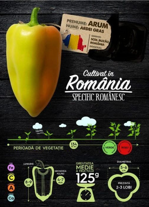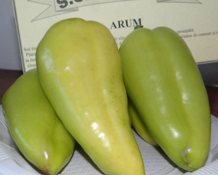 Ardeiul gras Arum este un soi de ardei gras conic timpuriu, cu planta viguroasă, ce produce fructe mari, cu pulpă groasă, cu greutatea medie de 125 grame, de forma trapezoindala, tip potop, cu 2-3 lobi, de culoare verde albicios la maturitatea de consum, iar la maturitatea fiziologică, fiind roșu intens, cu luciu.