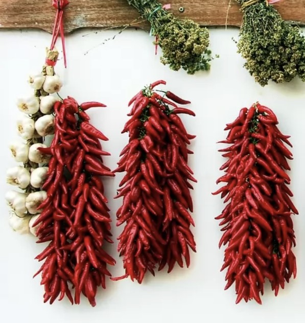 PEPERONCINO PICCANTE DIAVOLICCHIO CALABRESE, SOI DE ARDEI SPECTACULOȘI, CE CRESC ÎN BUCHETE VERTICALE, ȘI SE COLOREAZA, DE LA VERDE, LA ROȘU INTENS.