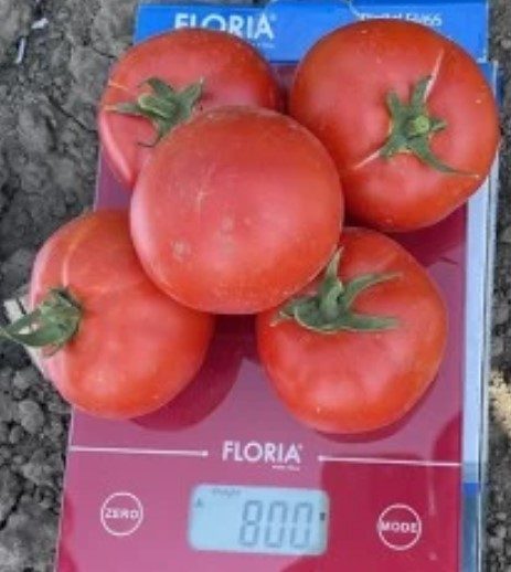 Greutatea medie a roșiilor este de 230 – 260 de grame iar forma este rotundă, ușor aplatizată .