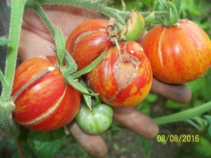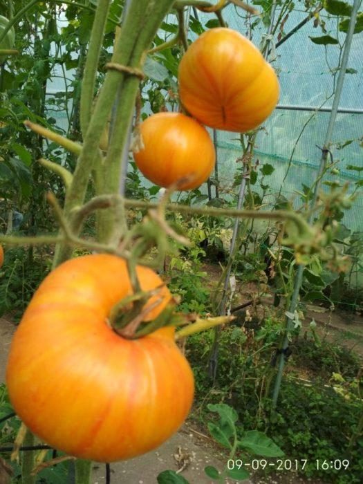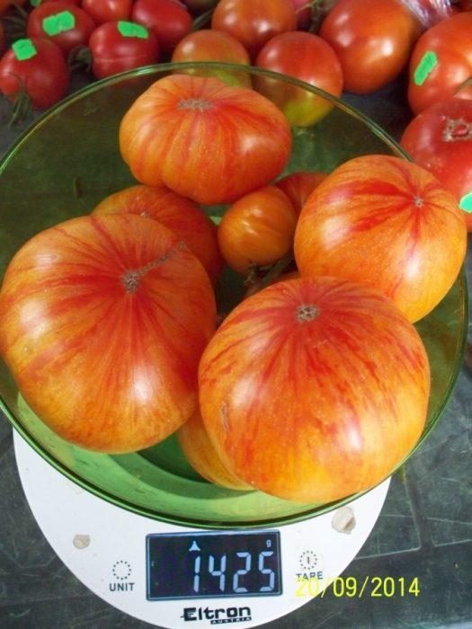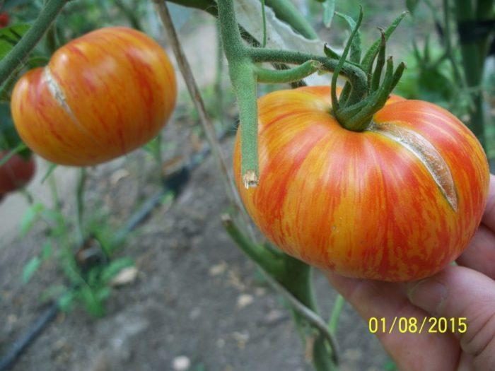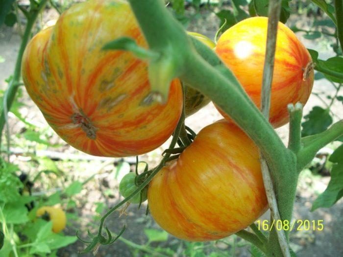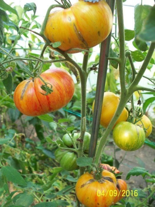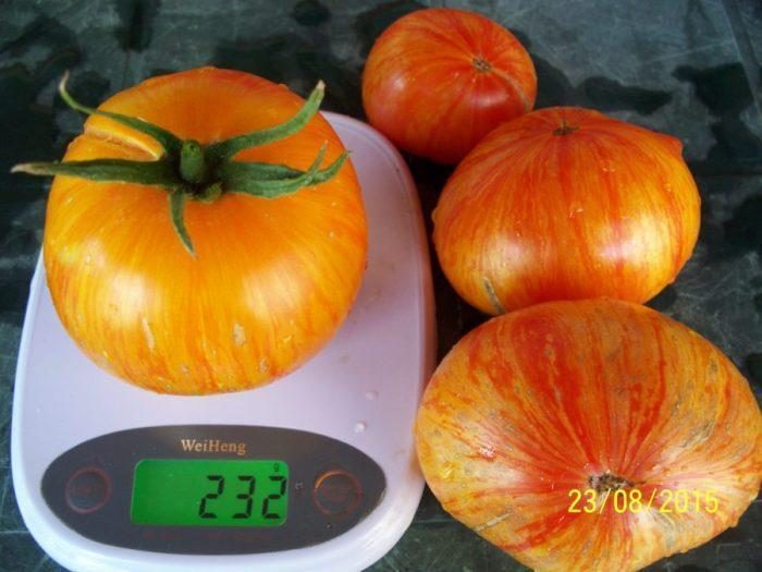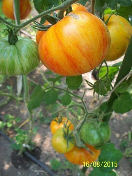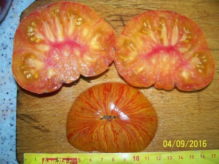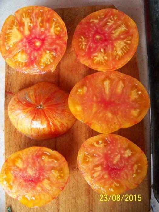 ACESTE SPECTACULOASE TOMATE, GALBENE CU DUNGI ROȘII, SUNT MARI, GUSTOASE, DULCI ȘI POTRIVIT DE ACIDE , SUCULENTE, CU AROMĂ INTENSĂ, UȘOR FRUCTATĂ.
