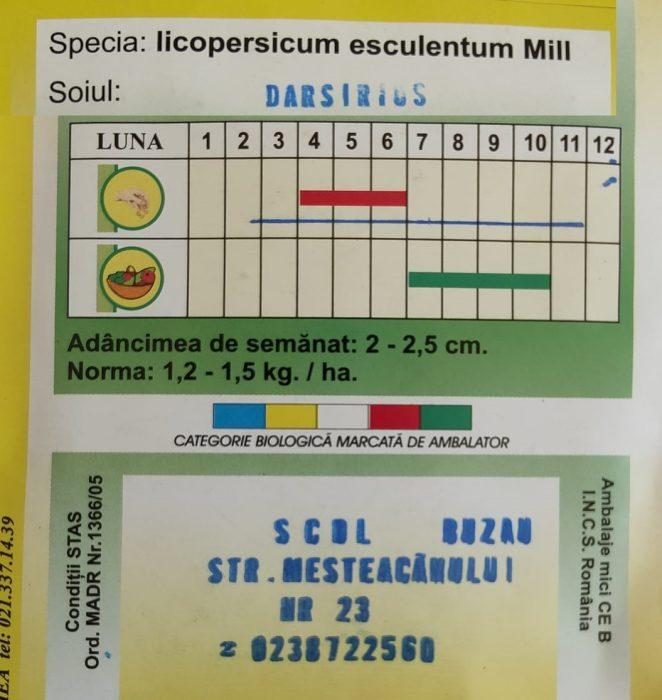 Soiul de tomate DARSIRIUS , are creştere determinată și este destinat cultivării în câmp, dar se poate cultiva și în solarii.
