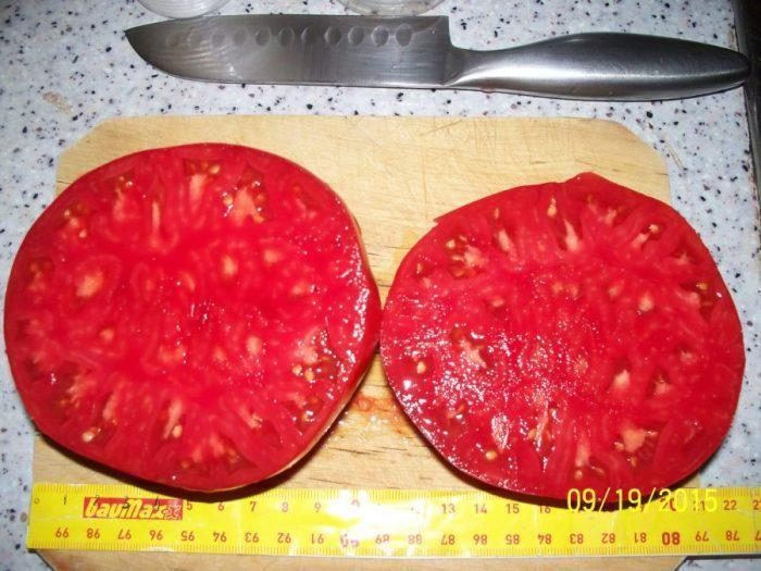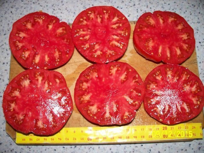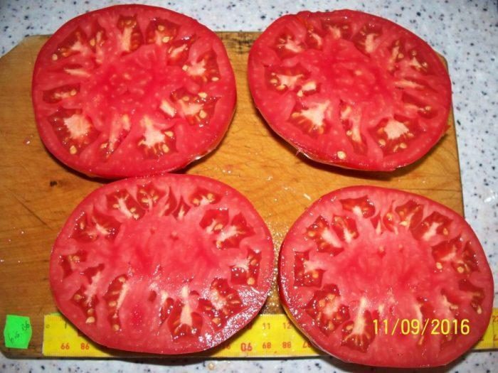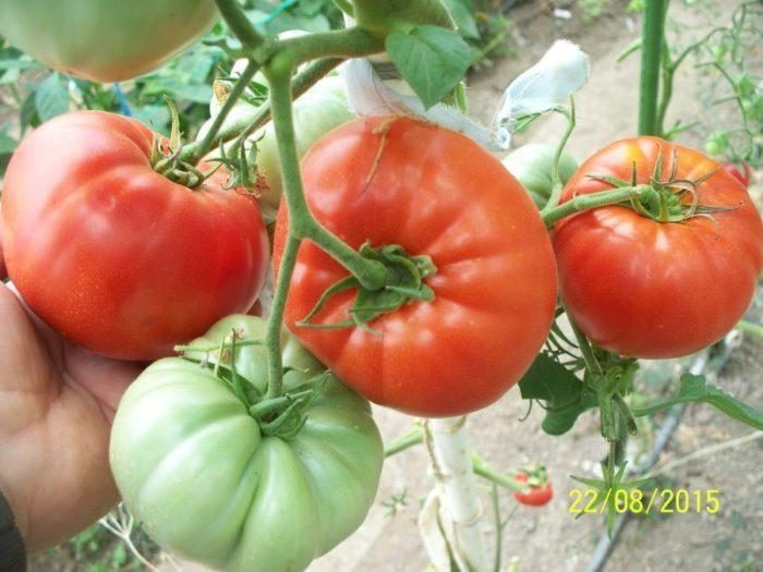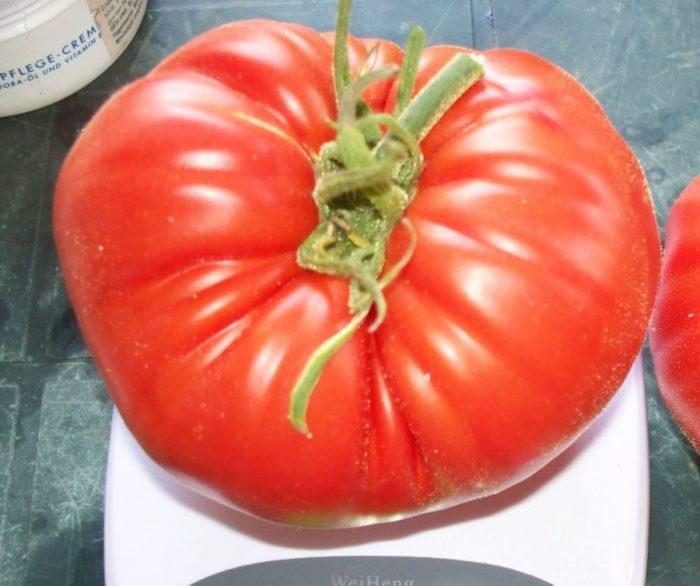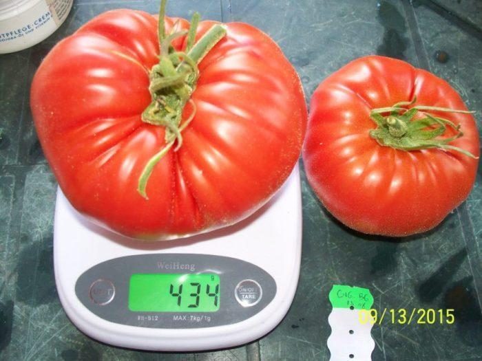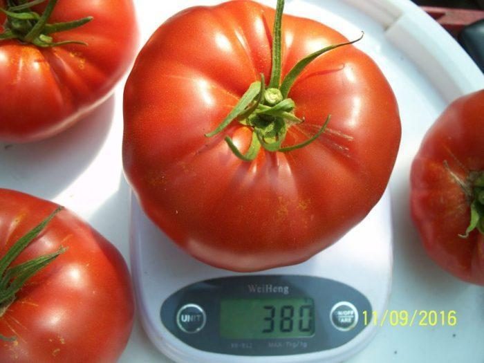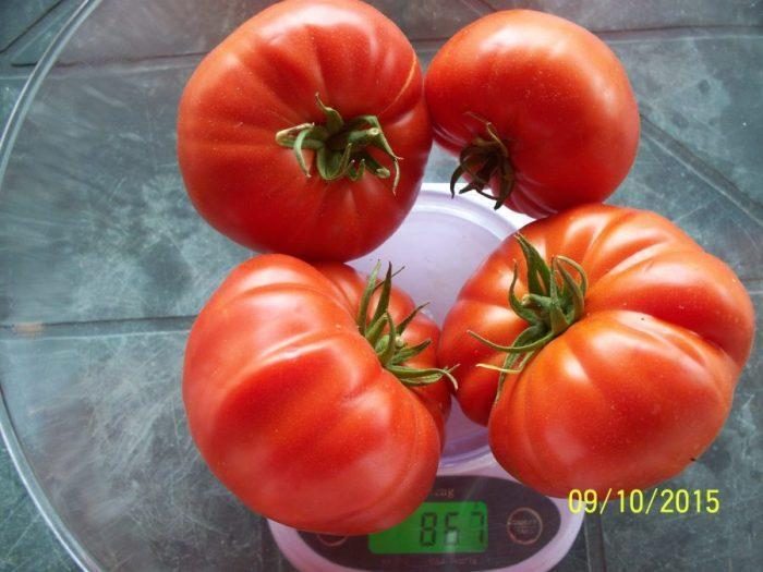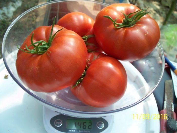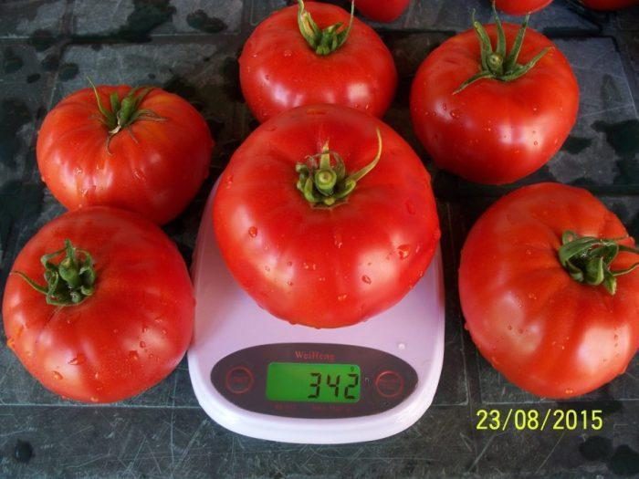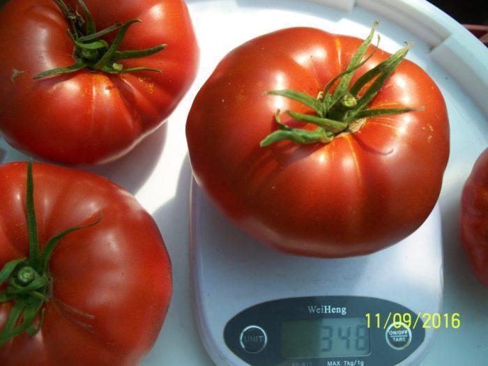 ESTE EXTREM DE PRODUCTIV,CU FRUCTE IN GREUTATE MEDIE DE 200-350 grame, DAR UN PROCENT MARE DE ROȘII POT AJUNGE  LA PESTE 400- 500 grame ȘI UNELE POT AJUNGE ÎN JUR DE 1 kilogram.