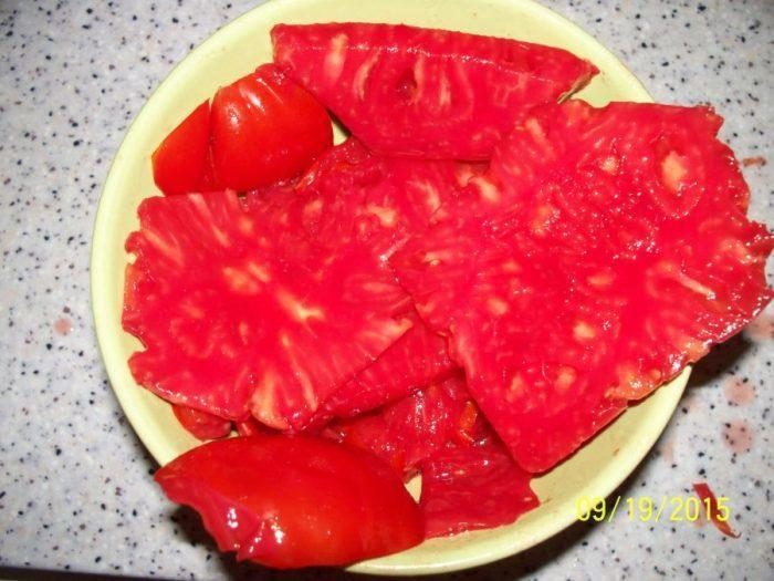 TOMATELE SUNT DE CULOARE  ROȘIE-INTENSĂ, DELICIOASE, INTENS AROMATE, FOARTE DULCI , NEACIDE, SUCULENTE, CU GUST DE ROȘIE VECHE.