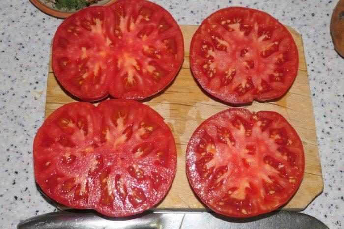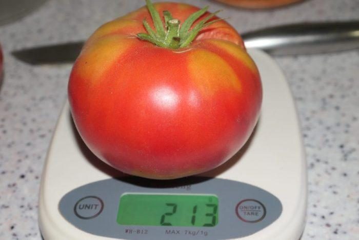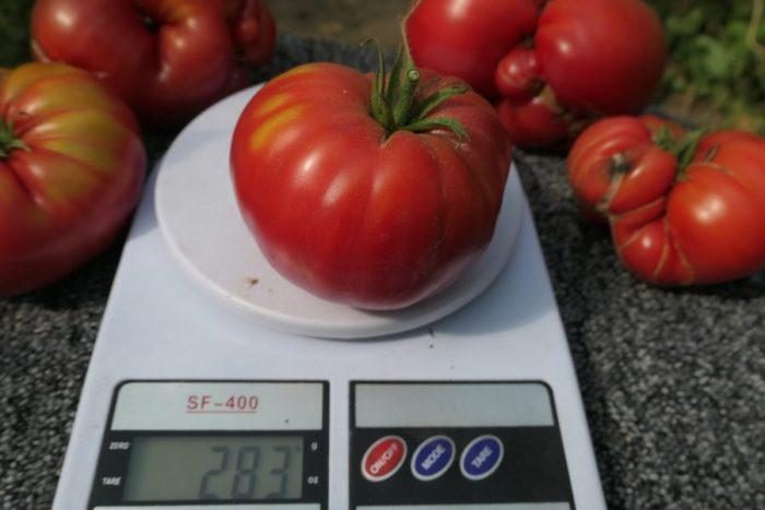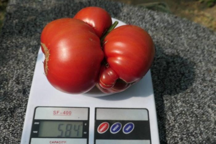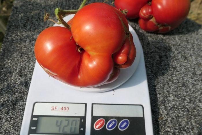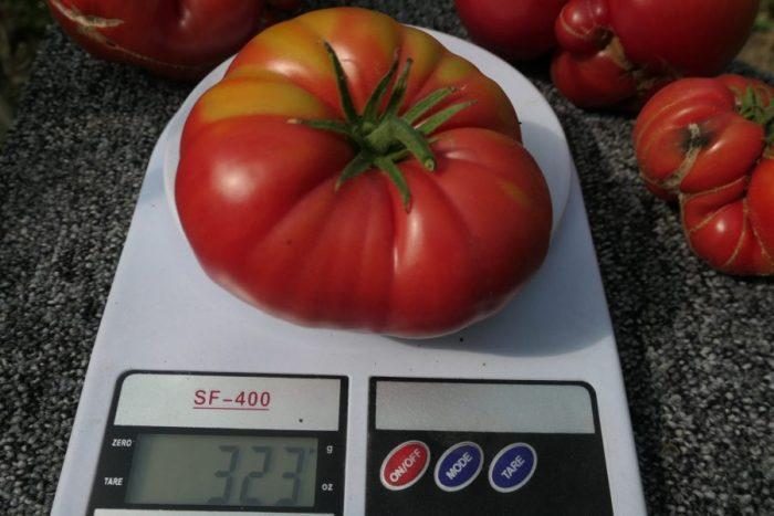 GREUTATEA TOMATELOR ESTE MARE ȘI FOARTE MARE, AVÂND ÎN MEDIE 250-500 grame, IAR UNELE DEPĂȘIND 600 grame.