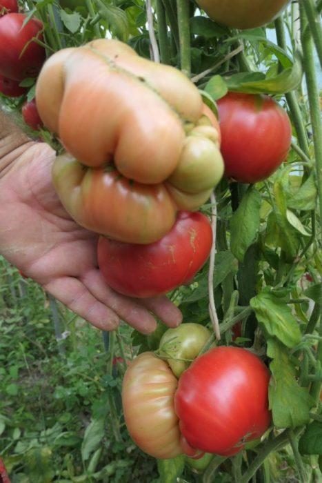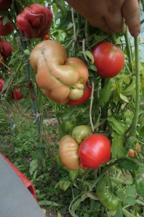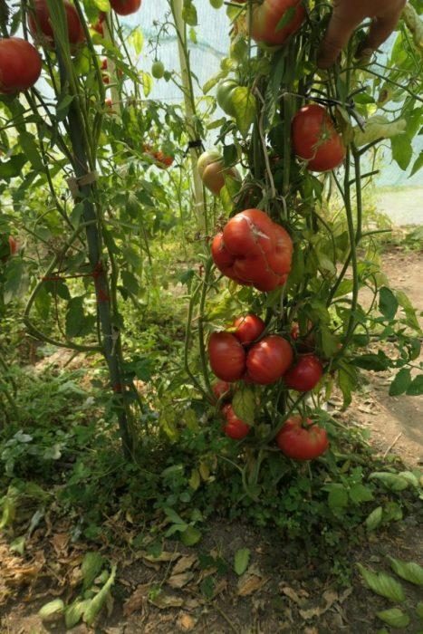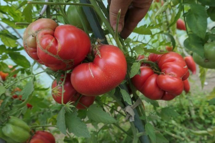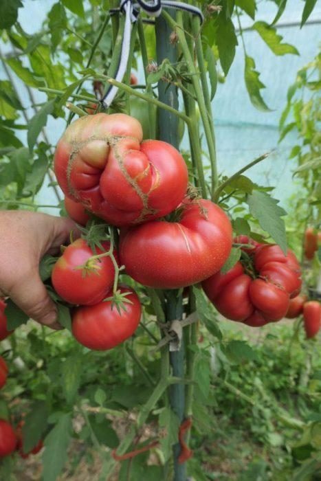 PRODUCTIVITATEA EXTRAORDINARĂ ESTE ASIGURATĂ DE CIORCHINII DE 4-5 FRUCTE MARI, ROȘU-ROZ ZMEURIU, FOARTE CĂRNOASE TIP BEEFSTEAK, CU GUST EXCEPȚIONAL, DULCE ,ARMONIOS ECHILIBRAT CU ACID ȘI AROMĂ MINUNATE DE ROȘIE VECHE. NOI AM OBȚINUT ȘI 2 kilograme , LA O PLANTĂ, LA O RECOLTARE.