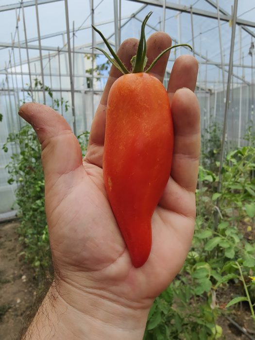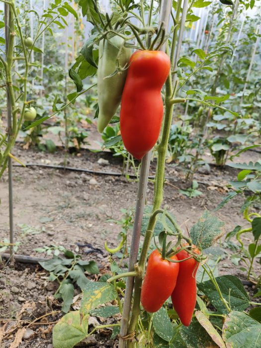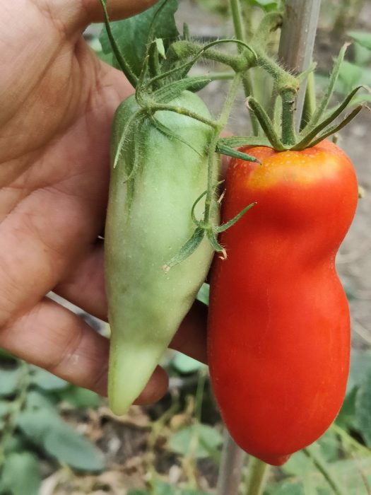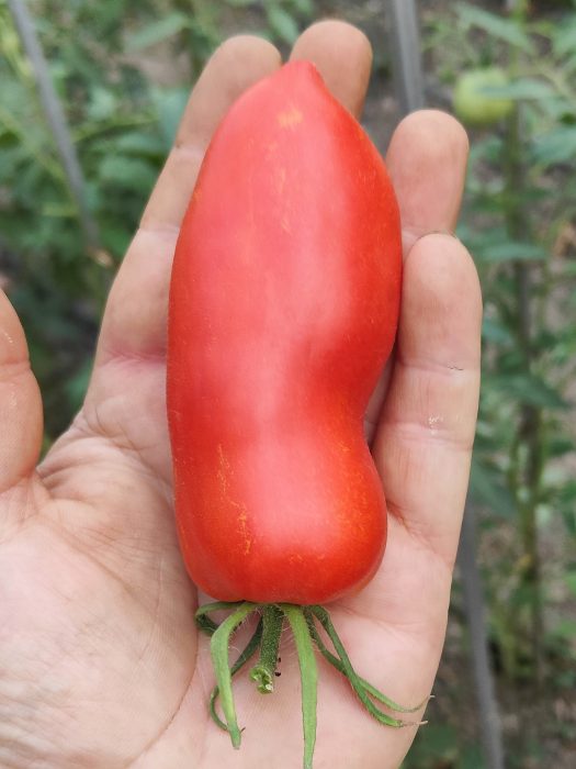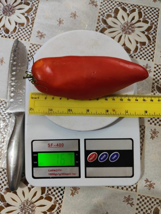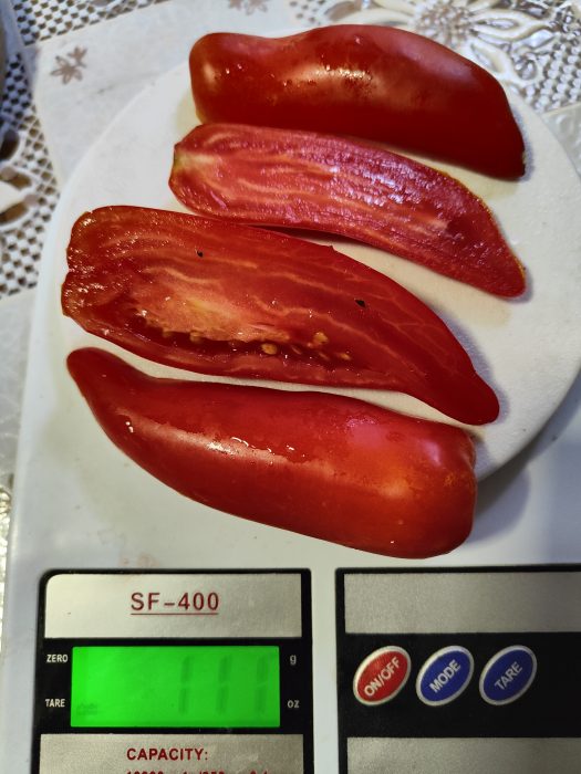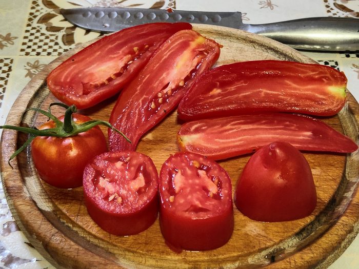 PLANTELE NEDETERMINATE, SUNT PRODUCTIVE ȘI FORMEAZĂ CIORCHINI DE 6-10 FRUCTE SPECTACULOASE, DE CULOARE ROȘIE INTENSĂ, SUCULENTE,,CĂRNOASE, CU PULPĂ FERMĂ, ÎN GREUTATE DE 60-200 grame, FĂRĂ GOLURI, CU SEMINȚE FOARTE PUȚINE .
