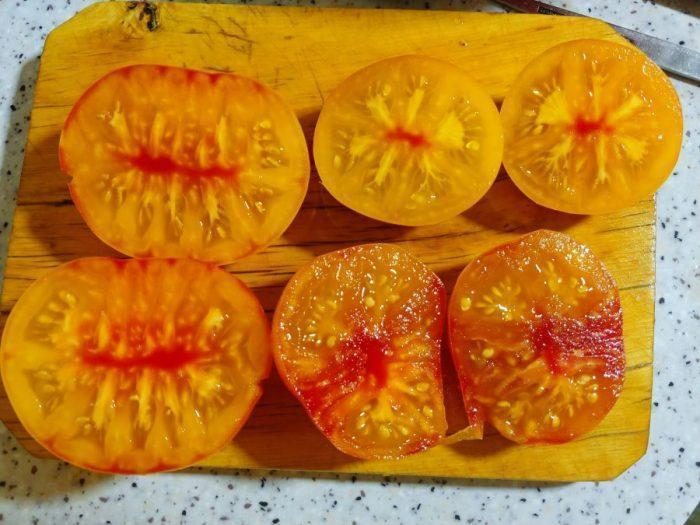 SOI BICOLOR ,ROȘU-GALBEN, SPECTACULOS ÎN SECȚIUNE, CU PULPĂ TIP BEEFSTEAK, CĂRNOASĂ, CE PERMITE FELIEREA PERFECTĂ,FĂRĂ A SE SFĂRÂMA.