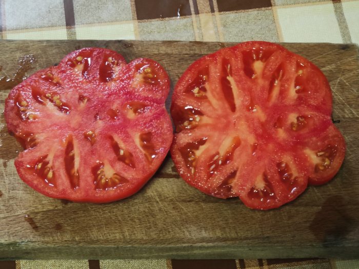 FRUCTELE SUNT FOARTE CĂRNOASE, FĂRĂ GOLURI INTERIOARE, DE CULOARE ROȘU -INTENS, CU PULPA FERMĂ.