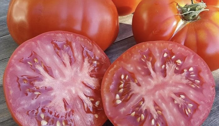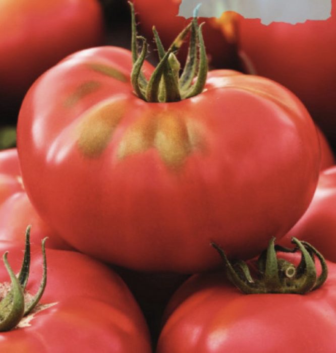 FRUCTELE DE CULOARE ROȘIE SUNT TIP BEEF, ROTUND-TURTITE, CU UMERI UȘOR ONDULAȚI, FOARTE CĂRNOASE, DE MĂRIME MEDIE ÎNTRE 100-250 gr., DAR FRECVENT POT AJUNGE LA 400-500 GRAME.
