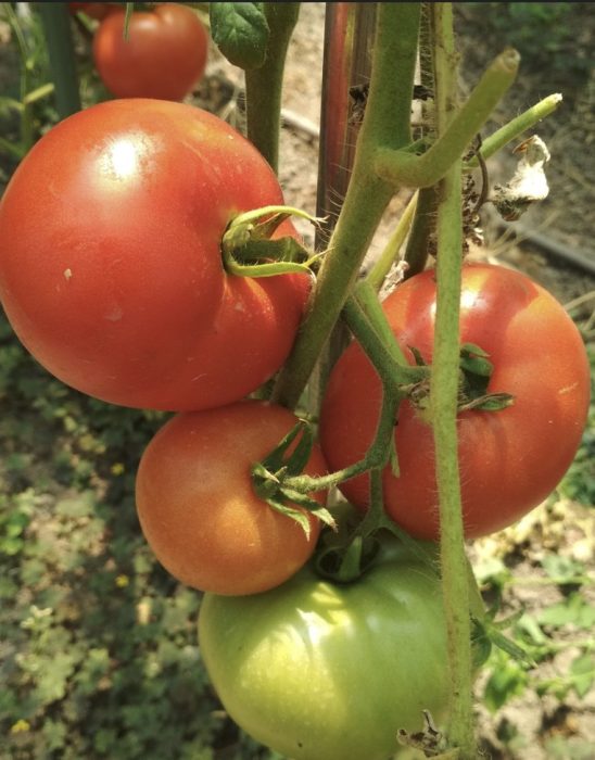 LA FIECARE ETAJ, FORMEAZĂ CIORCHINI DE 4-5 FRUCTE , CU TOMATE MARI, ÎN MEDIE ÎNTRE 250-280 grame ,FOARTE GUSTOASE, CU AROMĂ EXCELENTĂ , ASPECTUASE, SFERICE, UȘOR ONDULATE PE UMERI, CĂRNOASE, DENSE,REZISTENTE LA CRĂPARE.