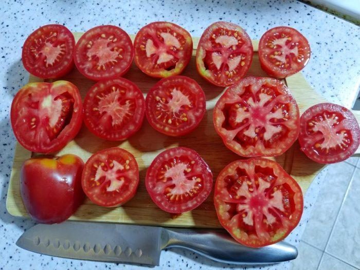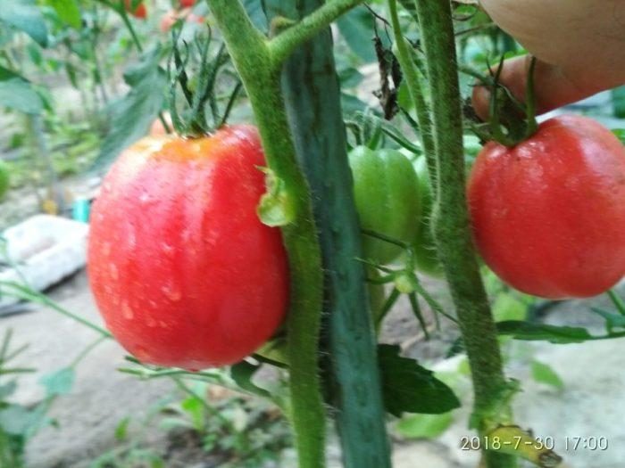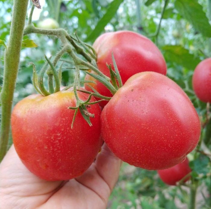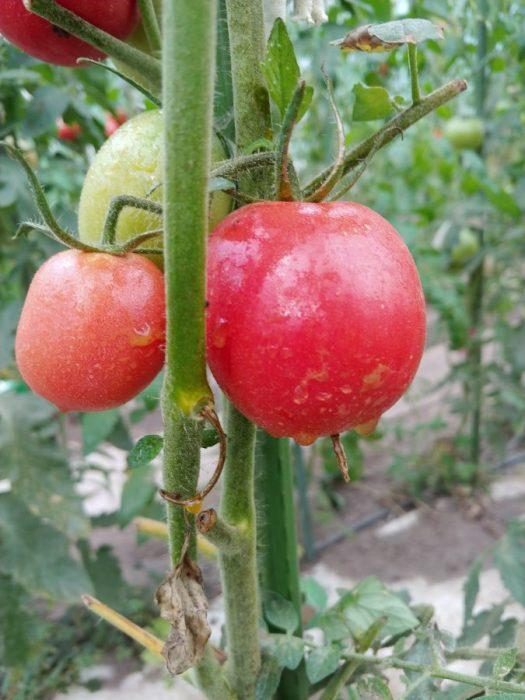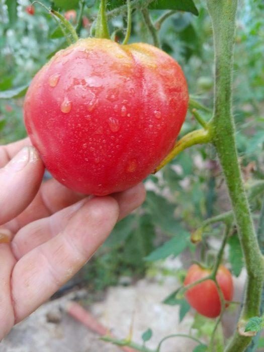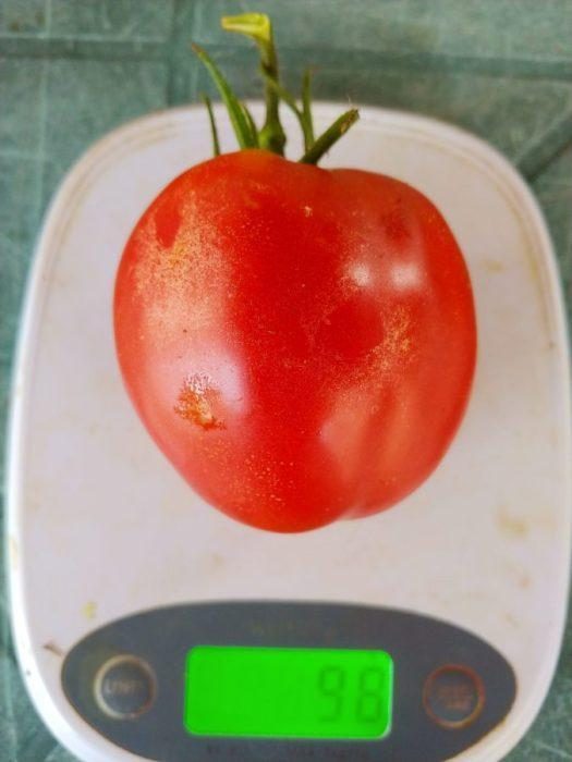 Fructele au între 60-100 grame, sunt roz, dense, cărnoase, deosebit de gustoase,dulci, excelente pentru salate , dar și pentru conserve .
