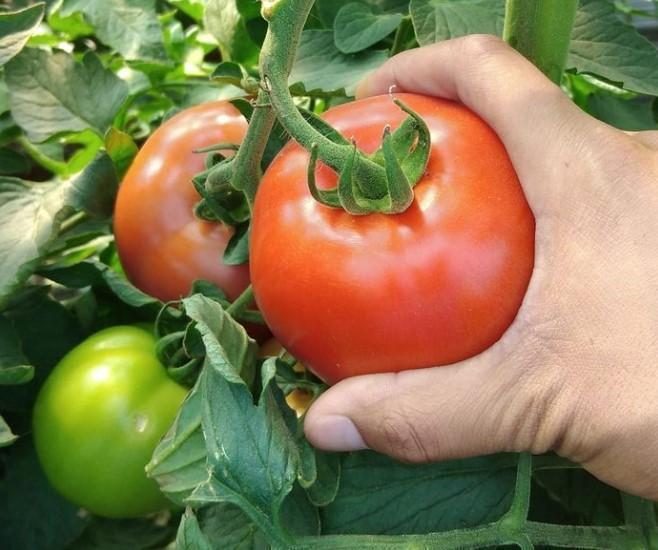Fructele tomatelor Zulfia F1 sunt de calitate deosebită, având o formă rotundă, o coacere uniformă și fără umar verde.